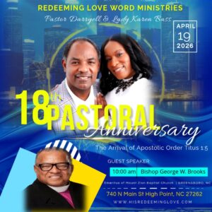 We are also honored to welcome our guest speaker, Bishop George W. Brooks, Emeritus of Mount Zion Baptist Church in Greensboro, North Carolina, who will bring a powerful word.